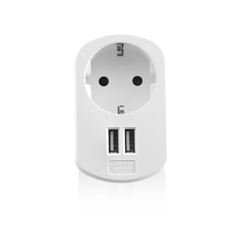 CARICATORE DA CASA A 2 PORTE USB 3.1A CON PRESA PASSANTE