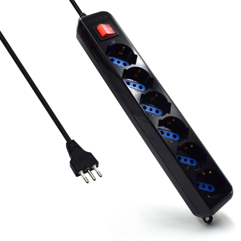 - 1 presa di corrente per spine italiane (10/16A) e tedesche - 2 prese di corrente per spine italiane (10/16A) - Include protezione per sovratensione e sovraccarico - Fori con protezione per bambini - Cavo di alimentazione da 1.5 mt. con spina Italiana 10A salva spazio - Completa di interruttore luminoso