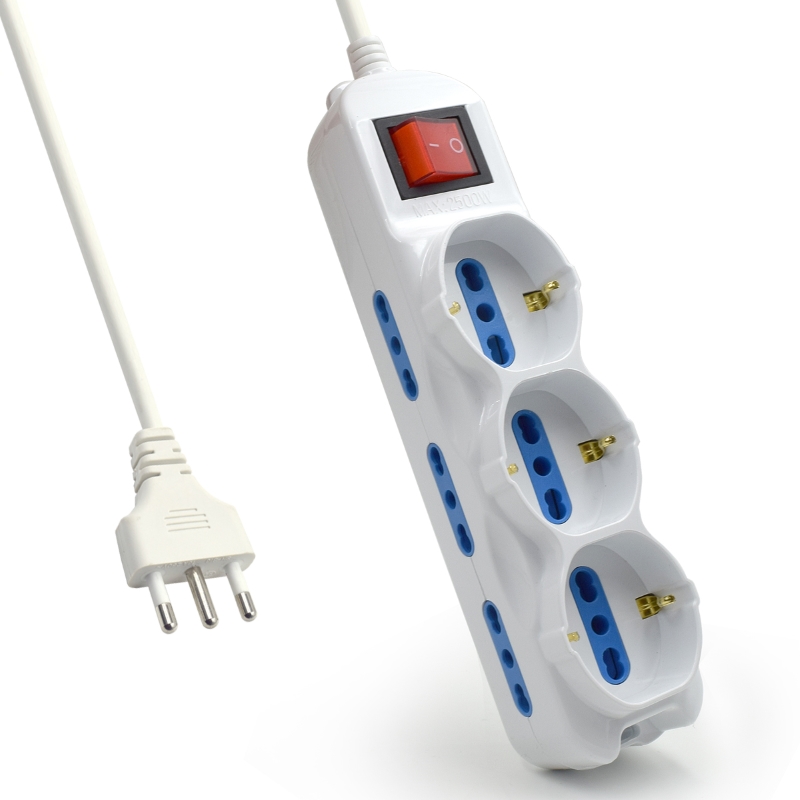 - Outlets: 4x Type L 10/16A and 2x Type F female + Type L 10/16A - Switch with light: Yes - Input: AC 110-230V-50-60Hz - Protection: Children, Overcurrent and Overtemperature - Cable: H05VV-F 3G 1.0 mm2 - 5.0 mt. - Plug connector: space-saving Italian 16A (L Type) - Max voltage: 250V/3500W - Dimensions: 300x130x55mm - Weight: 320 gr - Color: White - Material: Plastic